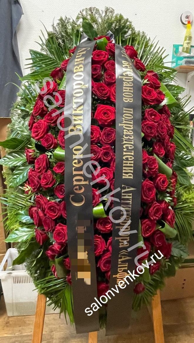 Элитный траурный венок из живых цветов №9, РАЗМЕР 100см,120см,140см,170см
