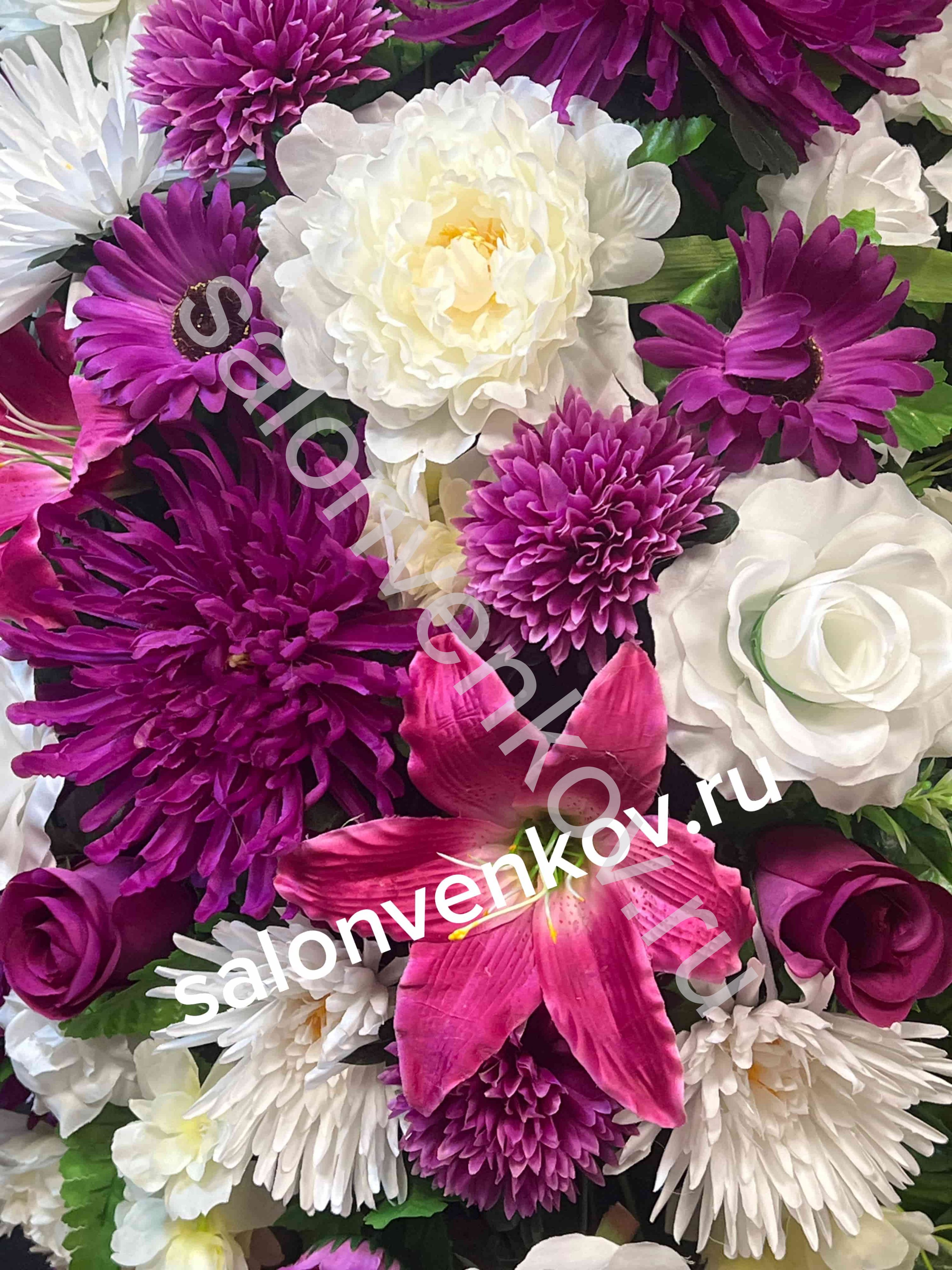 Каждый похоронный венок - авторская ручная работа, поэтому возможно незначительное расхождение с фотографией.