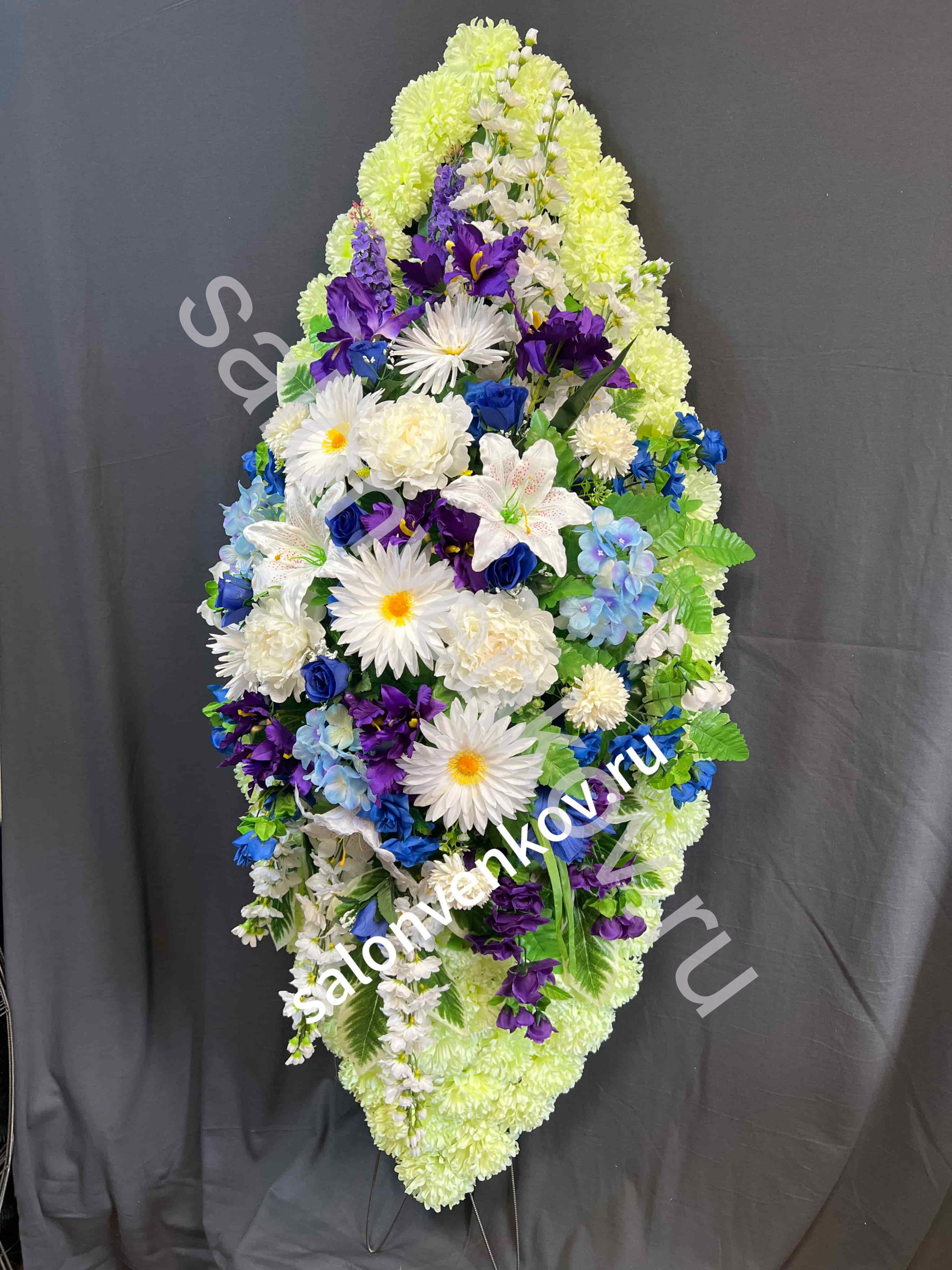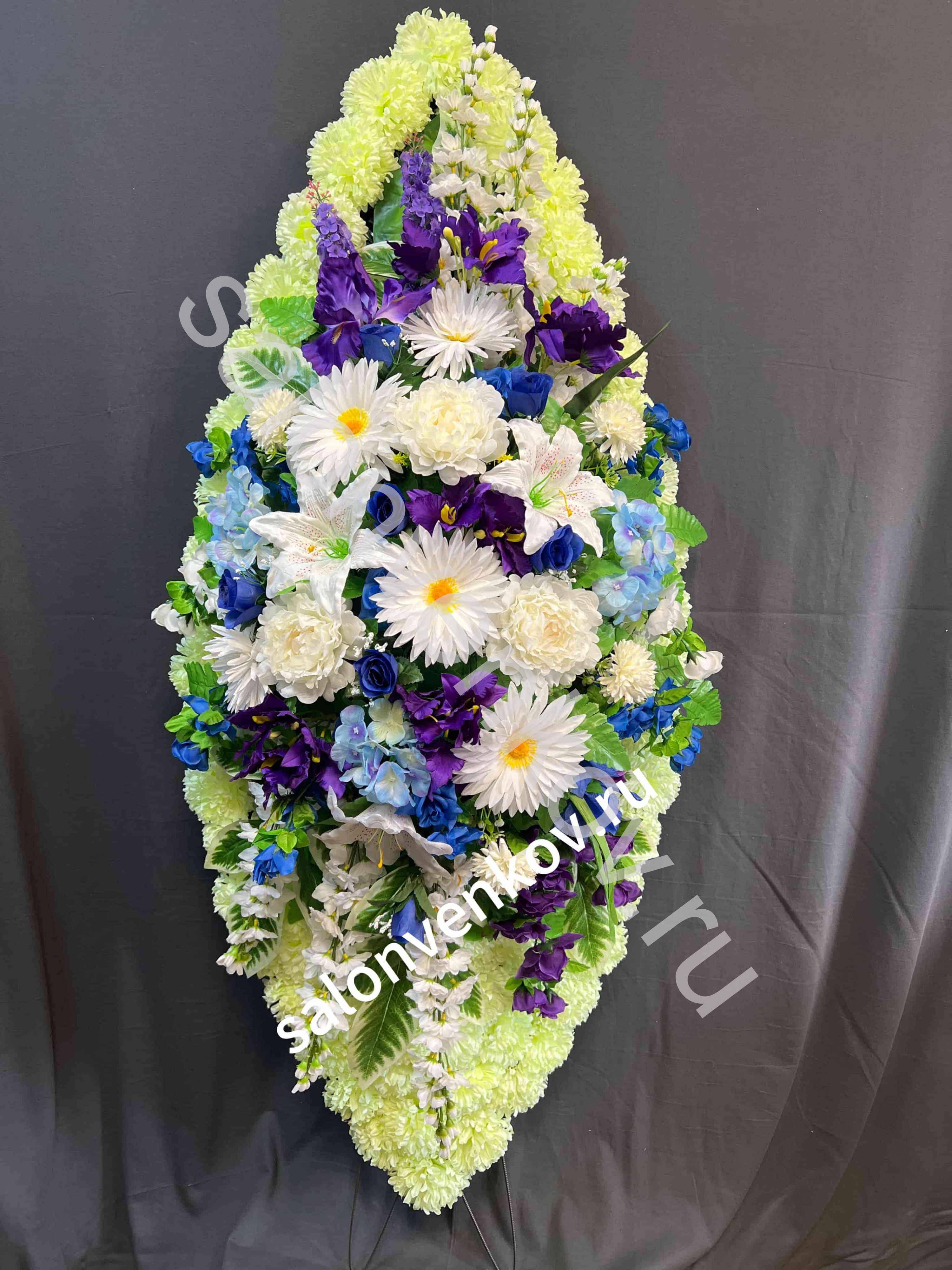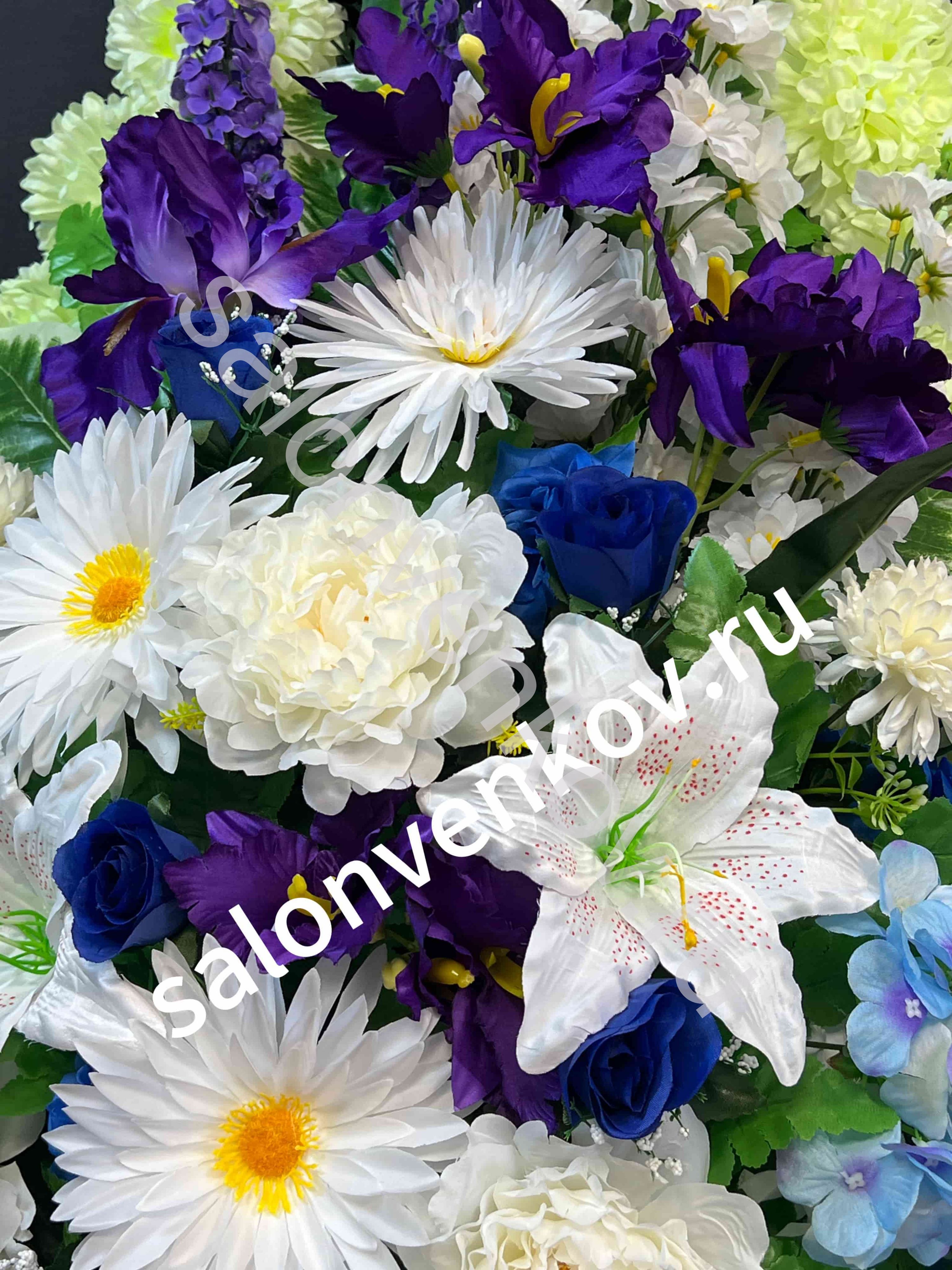Каждый похоронный венок - авторская ручная работа, поэтому возможно незначительное расхождение с фотографией.