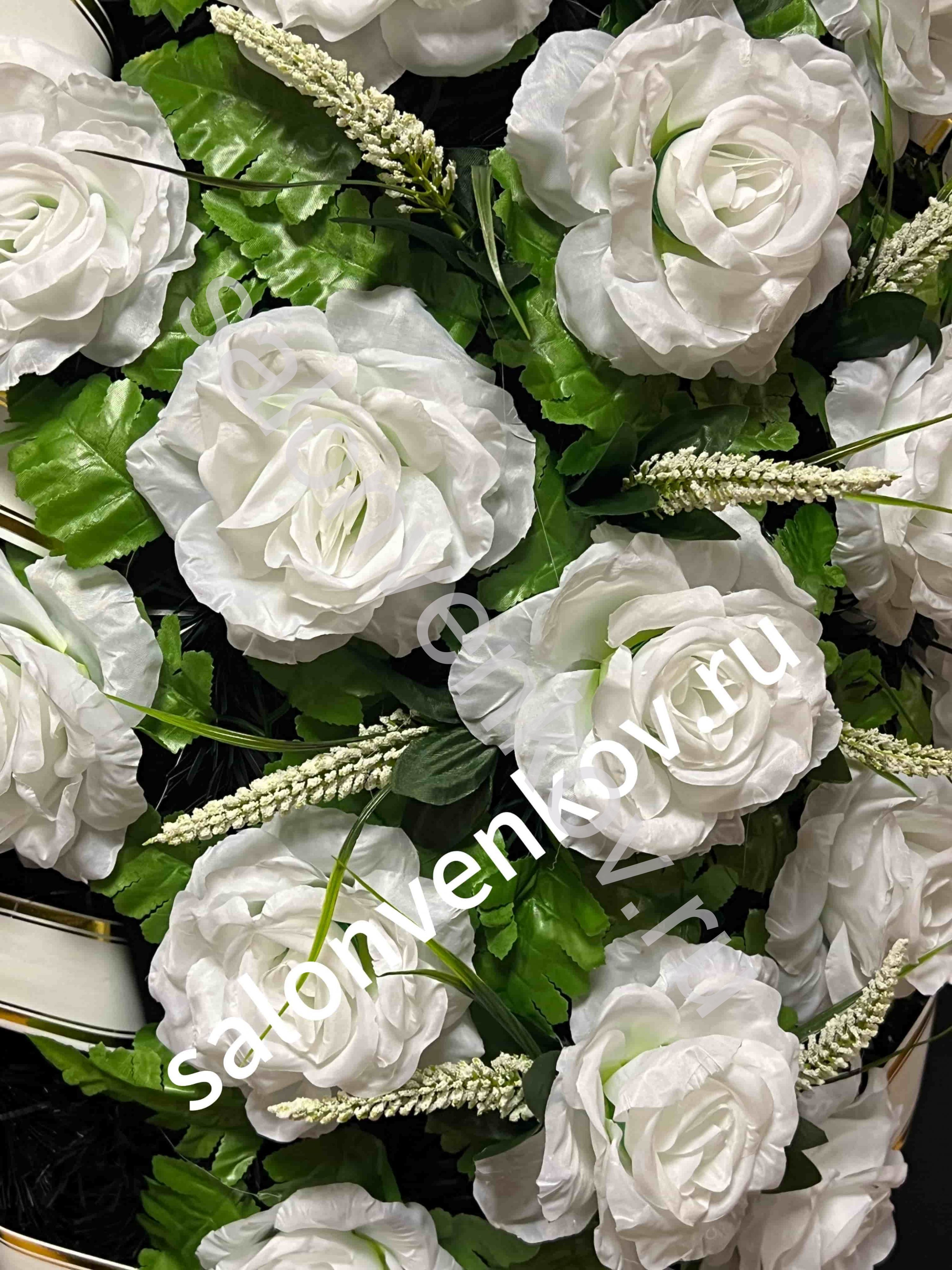 Каждый похоронный венок - авторская ручная работа, поэтому возможно незначительное расхождение с фотографией.