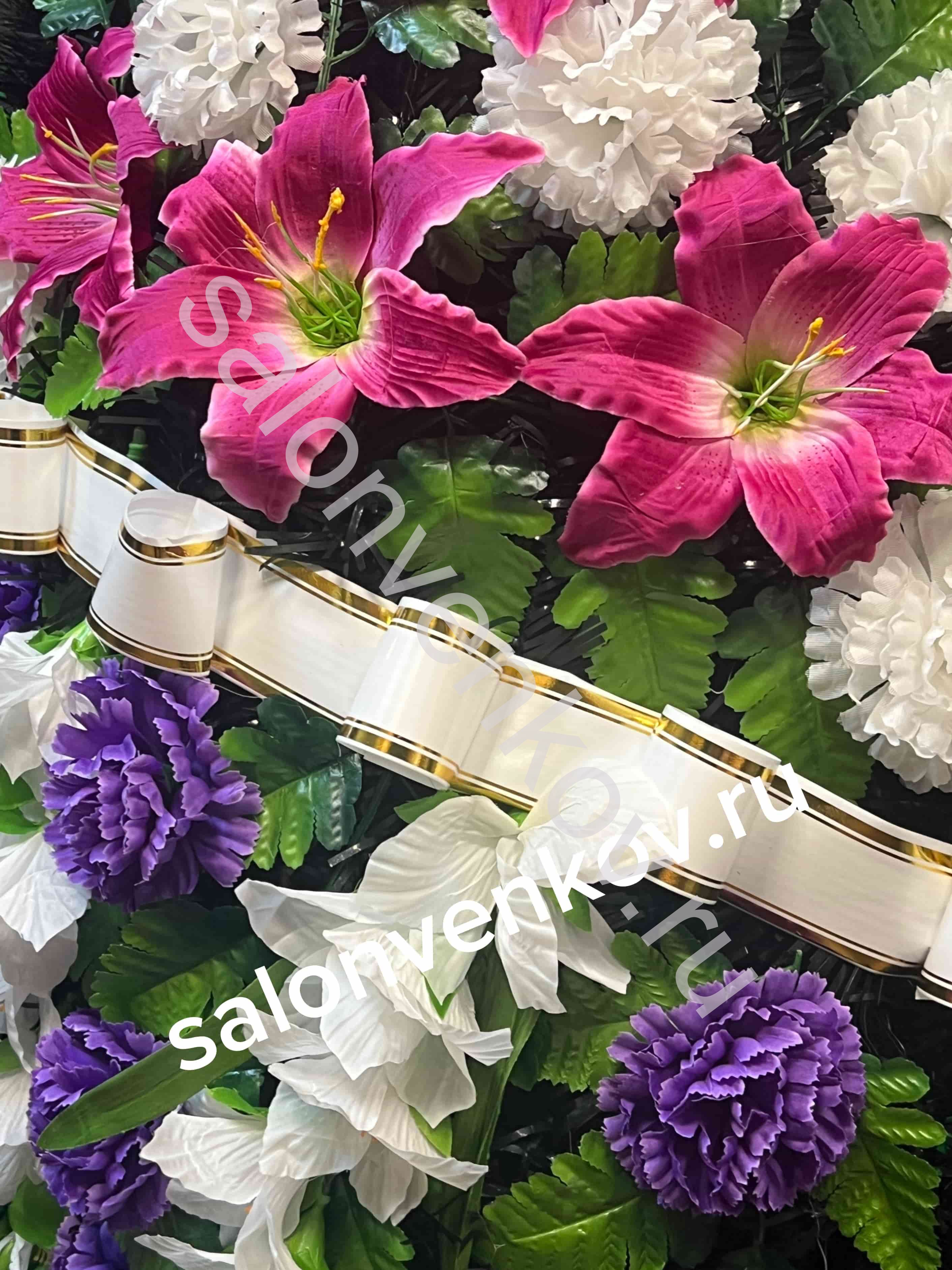 Каждый похоронный венок - авторская ручная работа, поэтому возможно незначительное расхождение с фотографией.